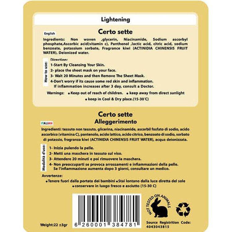 brightening face sheet mask contain vitamin c weight 22 grams