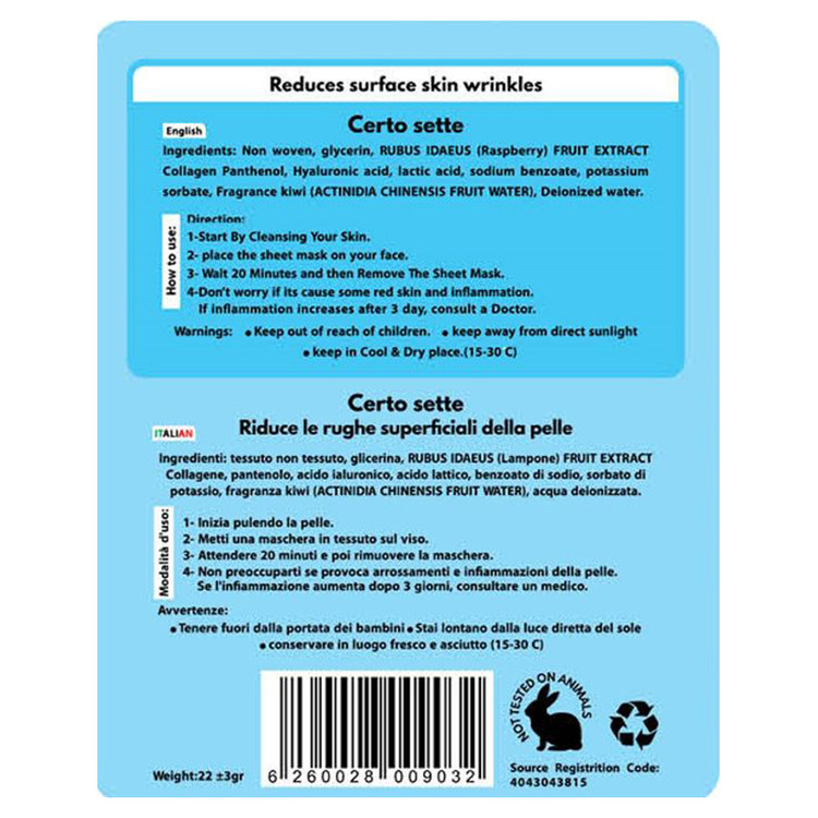 ماسک ضد چروک حاوی هیالونیک اسید با بهترین مواد اولیه و با پیشرفته ترین ماشین آلات روز تولید گردیده ،سرم و محلول فرموله شده در ماسک ضد چروک ،اثر بخشی بسیار بالایی برروی پوست دارد و باعث کاهش از بین رفتن چروکهای سطحی پوست میگردد. هیالورونیک اسید در حفظ رطوبت، ترمیم بافتها و انعطاف پذیری پوست تاثیر گذار است؛ به علاوه مانعی در برابر میکروارگانیسمها است و به رشد و ترمیم کلاژن و الاستین کمک میکند. این ماده جایگزین مناسبی برای کاهش حجم برخی از نواحی بدن است که دچار چین و چروک و فرورفتگی شدهاند. کلاژن در احیاسازی و حفظ بافت پوست نقش بسزایی دارد. قابلیت ارتجاعی و آبرسانی به پوست می دهد. با افزایش سن، بدن شما کلاژن کمتری تولید می کند و منجر به خشکی پوست و ایجاد چین و چروک می شود.