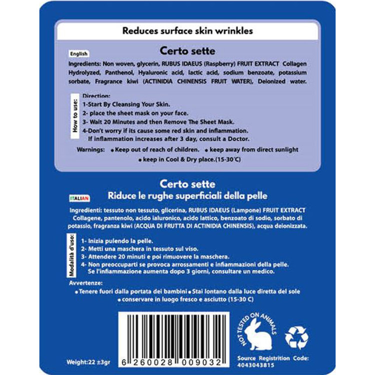 ماسک ورقه ای صورت ضد چروک مدل هیالونیک اسید+کلاژن وزن 22 گرم