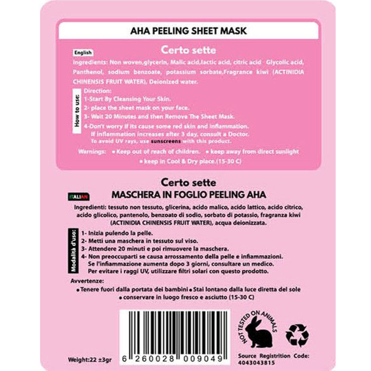 ماسک ورقه ای لایه بردار صورت مدل گلایکولیک اسید وزن 22 گرم